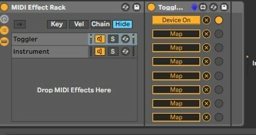 8 Mappable On/Off signals sent via midi from C0 upward to G.Put it on any midi track and switch any device parameter on or off using a midi note.